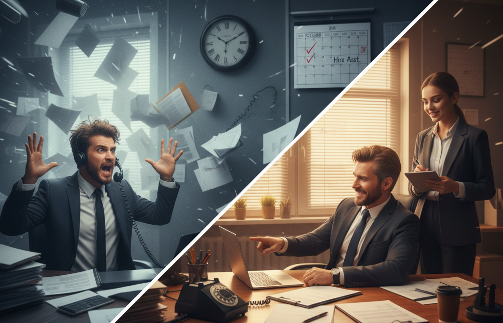 For many entrepreneurs, the decision to hire an executive assistant comes at a breaking point. You're buried in tasks. Deadlines are slipping. You haven't had a day off in months. Delegation starts not as a strategy — but as a last resort.